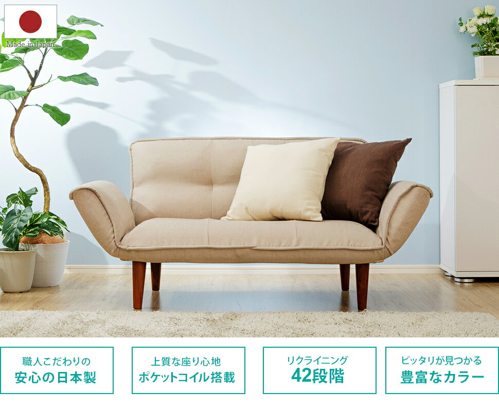【3月限定エントリーでポイント10倍】【関東 送料無料】楽天ランキング1位(ソファ部門) 和楽 カウチソファ2P(2人掛け)コンパクト 国産カウチソファベッド ラブソファA01 日本製 ソファー 二人掛け