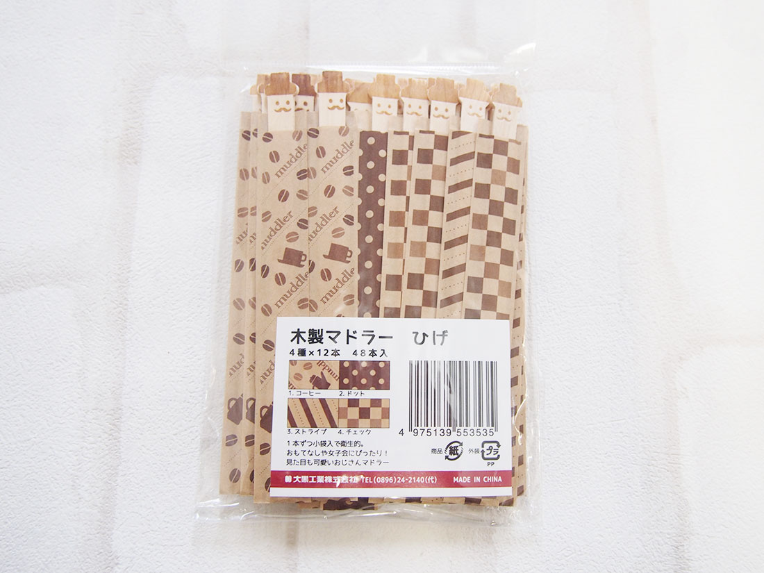 【5月1日最大400円OFFクーポン+エントリーで最大ポイント4倍】4975139553535 木製マドラー ひげ 4種×12本 48本入【キャンセル不可】